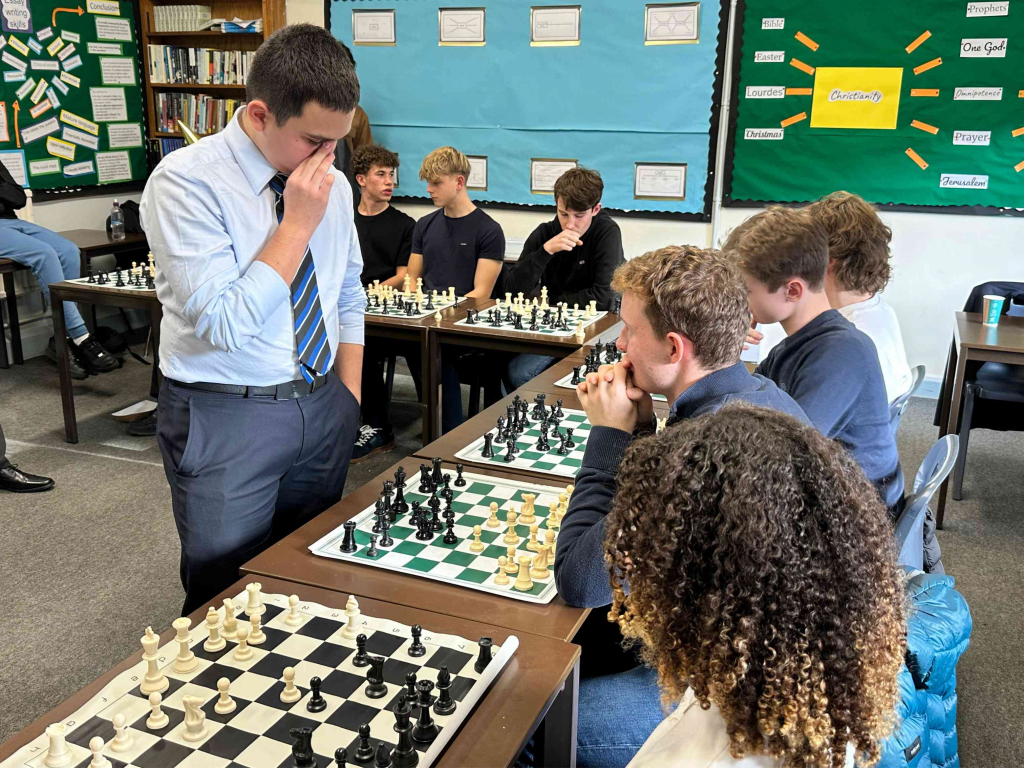 Mauricio, an international chess player with a current Elo rating of 2200, played an impressive simultaneous exhibition against 12 pupils on Wednesday lunchtime.