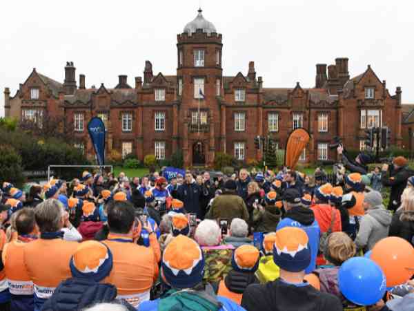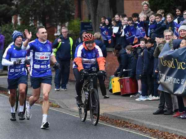 He was greeted by hundreds of enthusiastic Prep School pupils lining Ivry Street, offering cheers, banners and messages of encouragement as he made his way through the school’s blue gates. Kevin then took a short rest and recovery break on the school grounds, where he gathered with pupils for a photo.