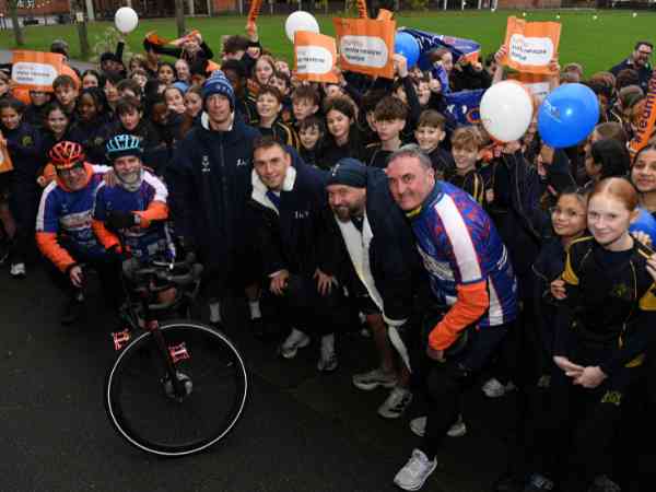 Several pupils were also given the opportunity to ask Kevin questions about his motivation, training and the importance of raising awareness for Motor Neurone Disease. As he continued his route, students gathered across the grounds to give him a heartfelt send-off.