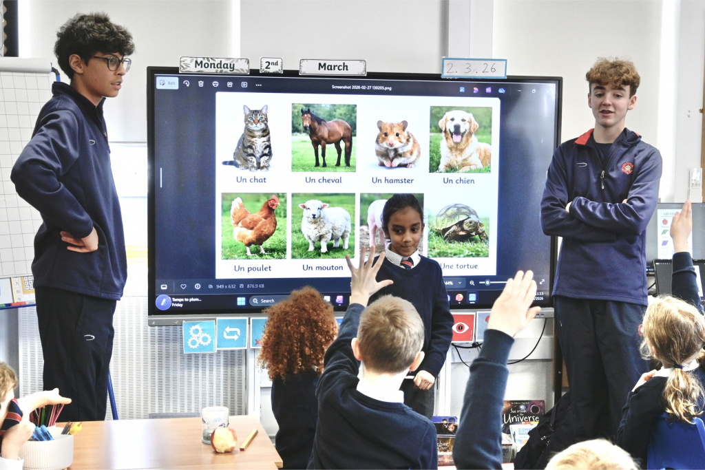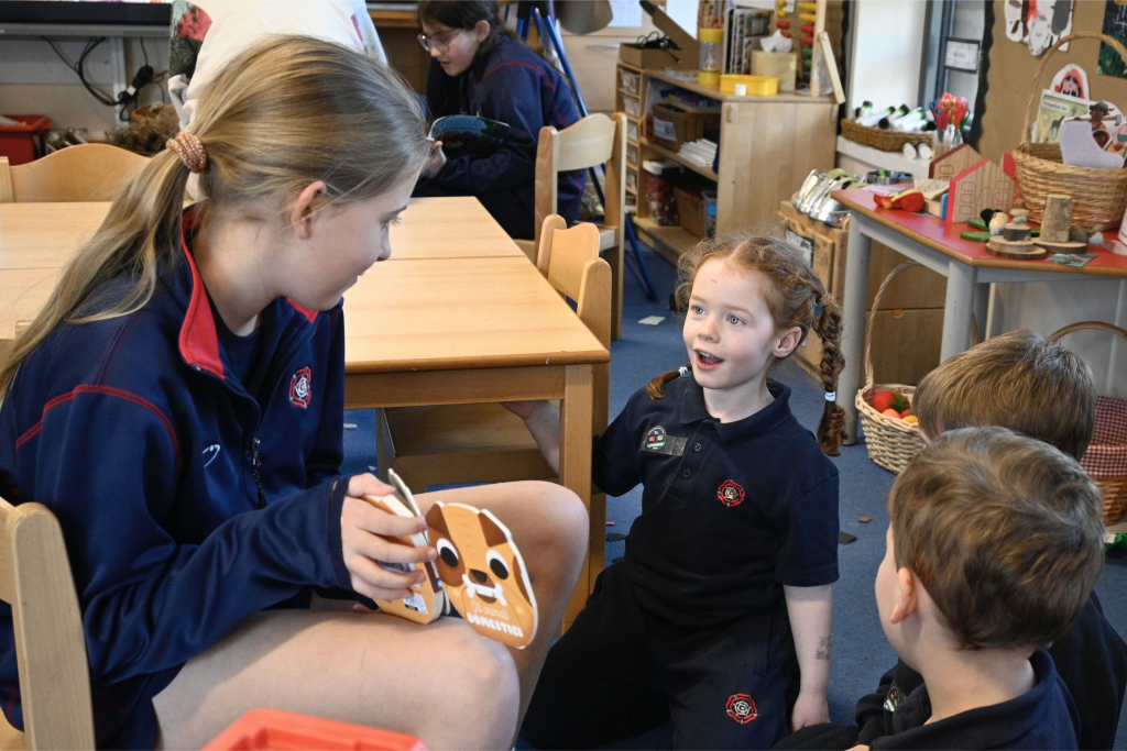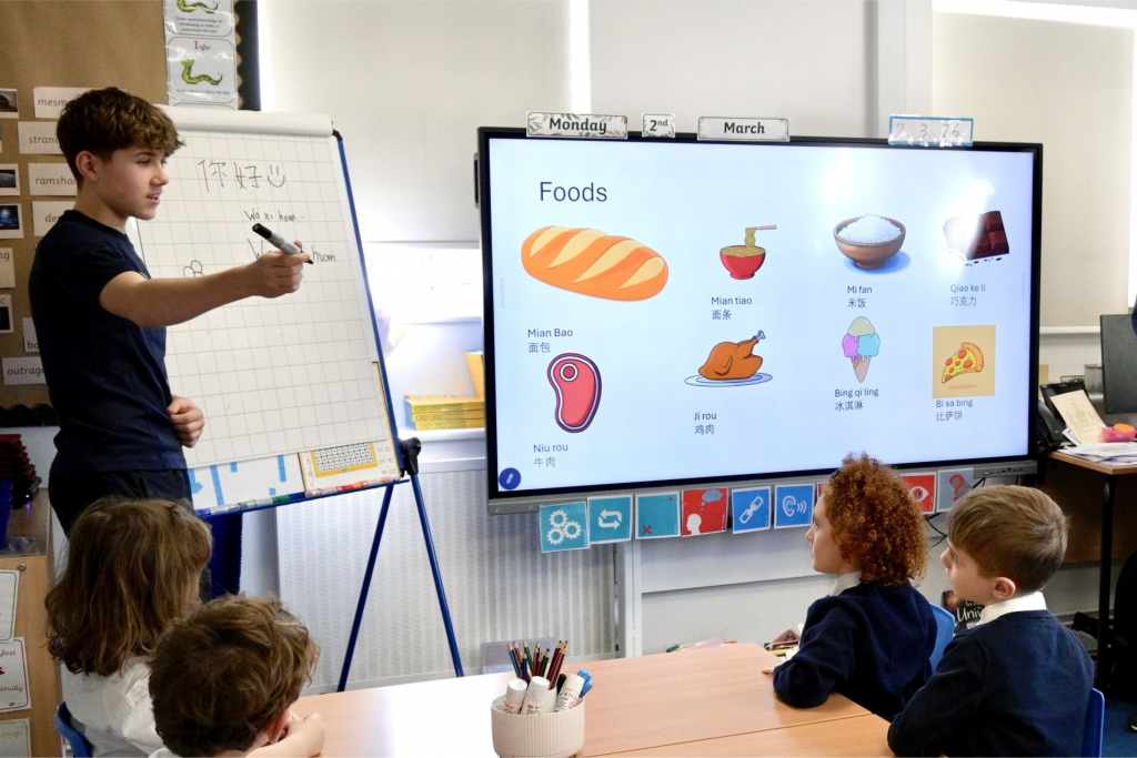 Year 6 weren’t only teaching verbal languages. Another pupil, Frida, was teaching pupils how to speak the expressive sign language Makaton. “We’re going to do animals, food, hello, goodbye and please and thank you,” she shared before visiting Year 1. “It can be quite tricky, but I’m sure they can do it!” Indeed, they could with Frida and Ms Appleyard’s expert help.