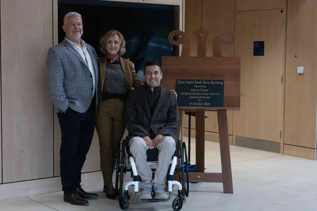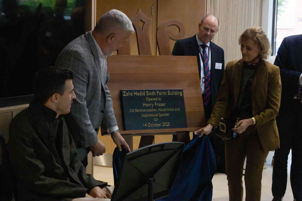 The building was opened by Old Berkhamstedian, mouth artist and inspirational speaker, Henry Fraser. His thought-provoking speech discussed the building’s role in scaffolding Sixth success at Berkhamsted and beyond.